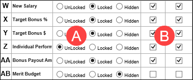 - Set the columns to UnLocked, Locked or Hidden.