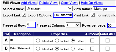 - Scroll through the columns and adjust the settings as you desire for the users of the View you are working in: