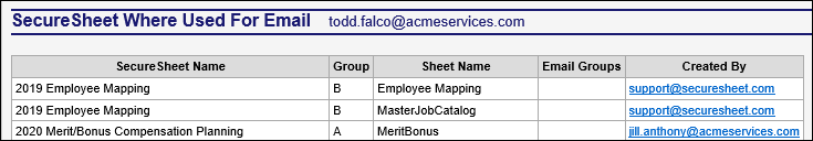 Over time using SecureSheet, you may find that you need to delete email addresses from your main Email (User) Administration file to remove email addresses that are no longer needed by the system.