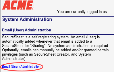 - Click System Administration in the upper right navigation on your SecureSheet home page.