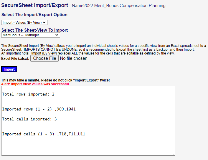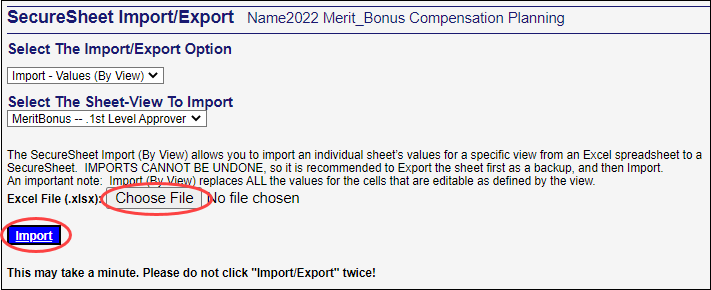 If you have worked with an Exported SecureSheet file in Excel, and you have permission to import values into SecureSheet, you may follow these steps to import values using the Import Values by View import tool.