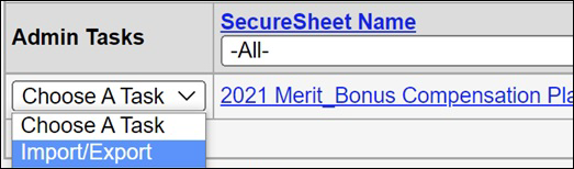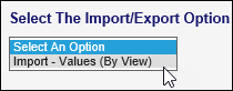 NOTE: The Admin Tasks menu drop-down and link are only available if you have been given permission to Import Values by View.