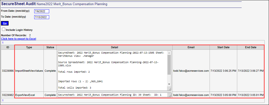 - Adjust the dates for the activity you want to see as needed and click Go.