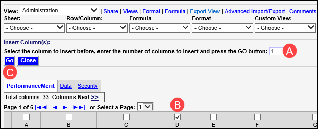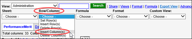 If the scenario requires you to insert a column between two data columns (versus at the end of the data set), you may do so using the Administration tools.