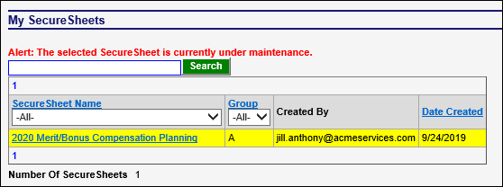 NOTE: Only administrators can go into a SecureSheet when it is in Maintenance Lock, so there is not an alert at the top of the screen when you go into a SecureSheet that is in Maintenance Lock.